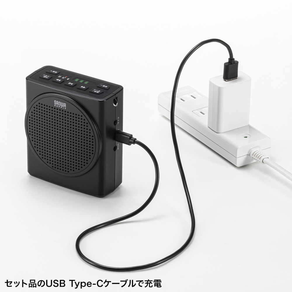 ●microSDカードに保存されたMP3音楽データを再生可能です。音楽再生しながらの拡声もできます。