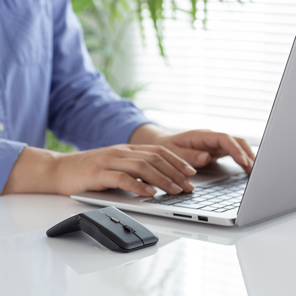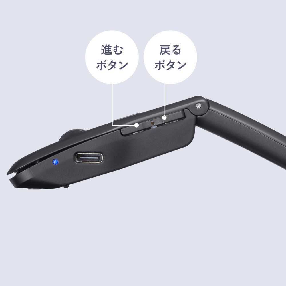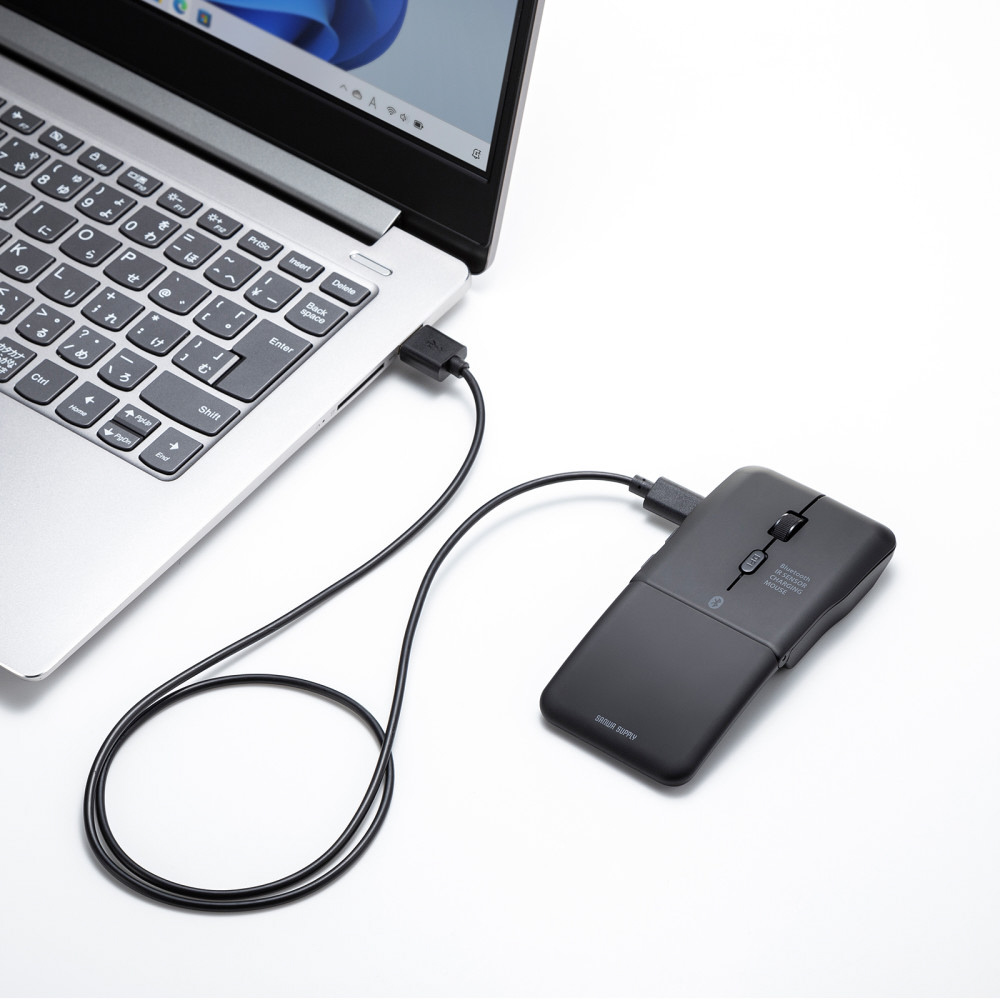 かばんにすっぽり入る、超薄型の充電式Bluetoothマウス。5ボタン。薄型。