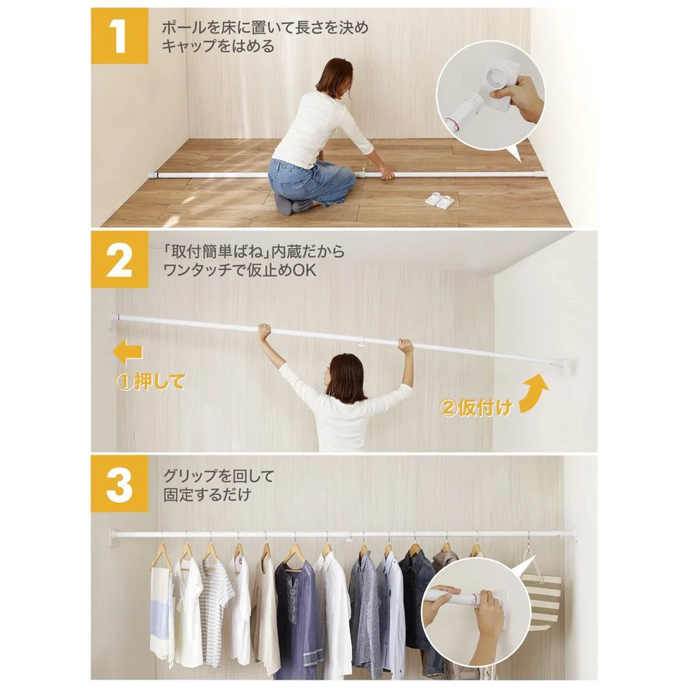 ■幅広いテイストに馴染むシンプルな突っ張り棒です。