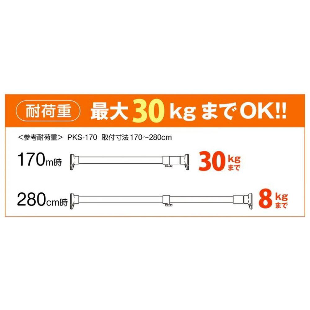 突っ張り棒 取付幅: 170〜280cm L 強力 ステンレスポール