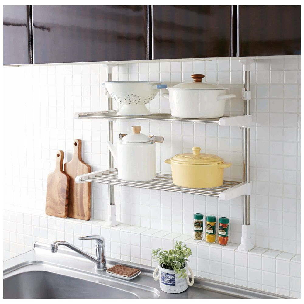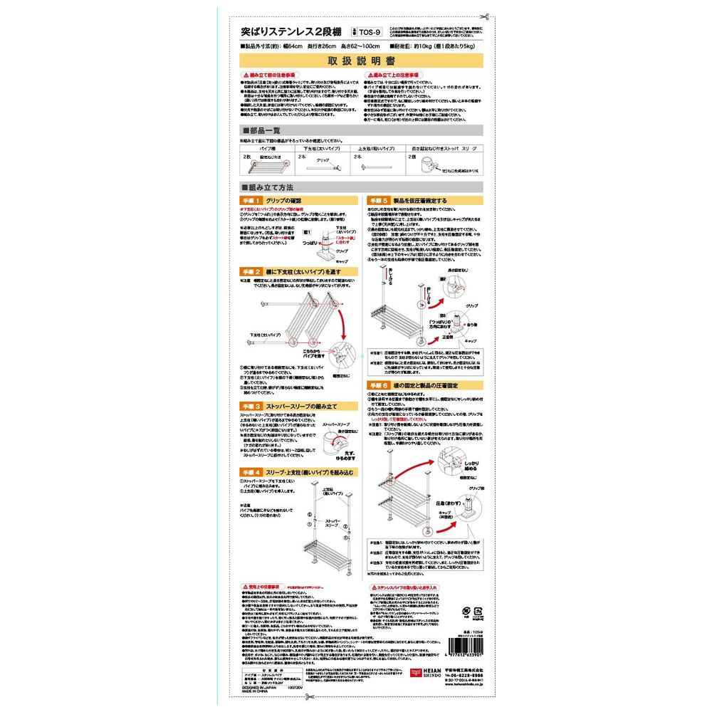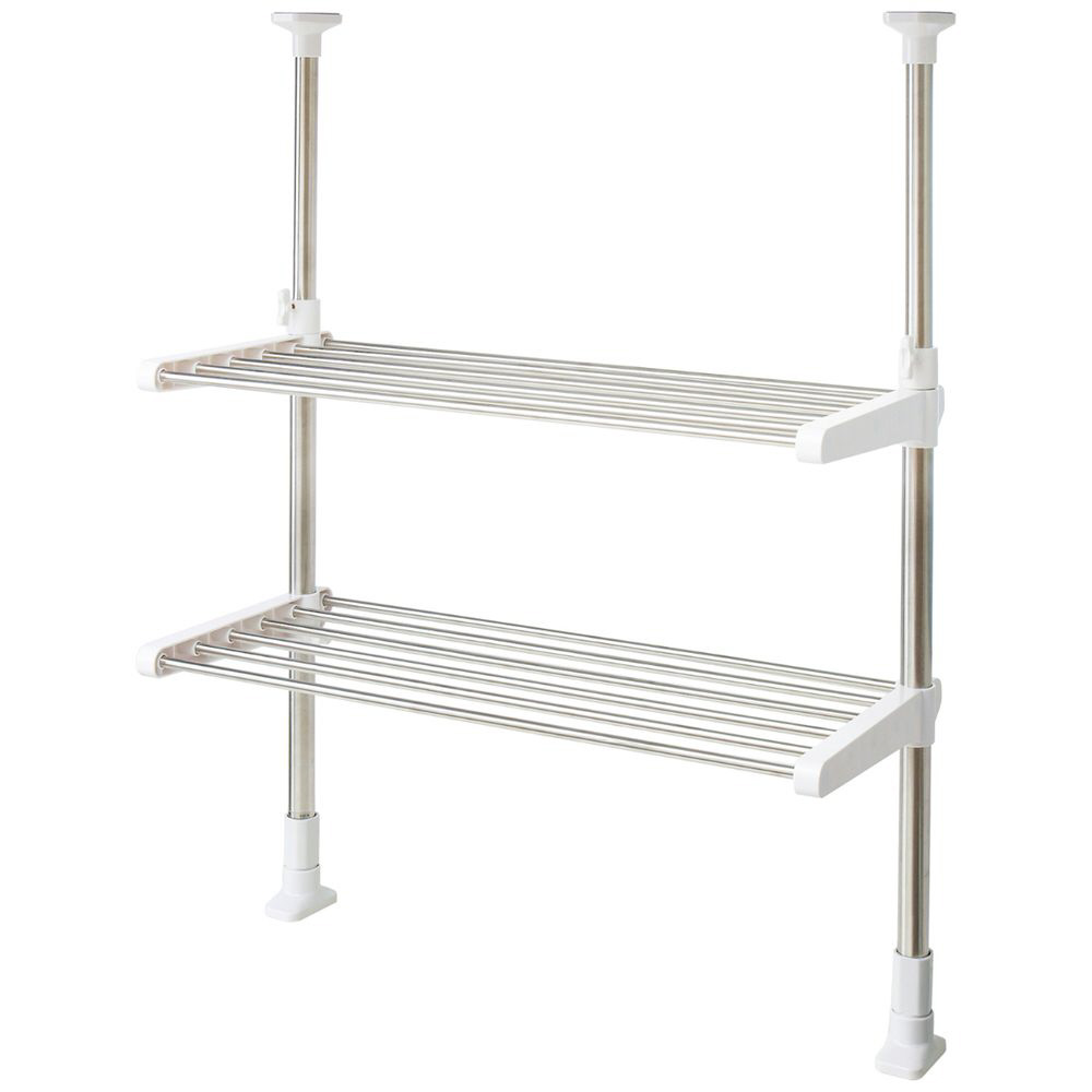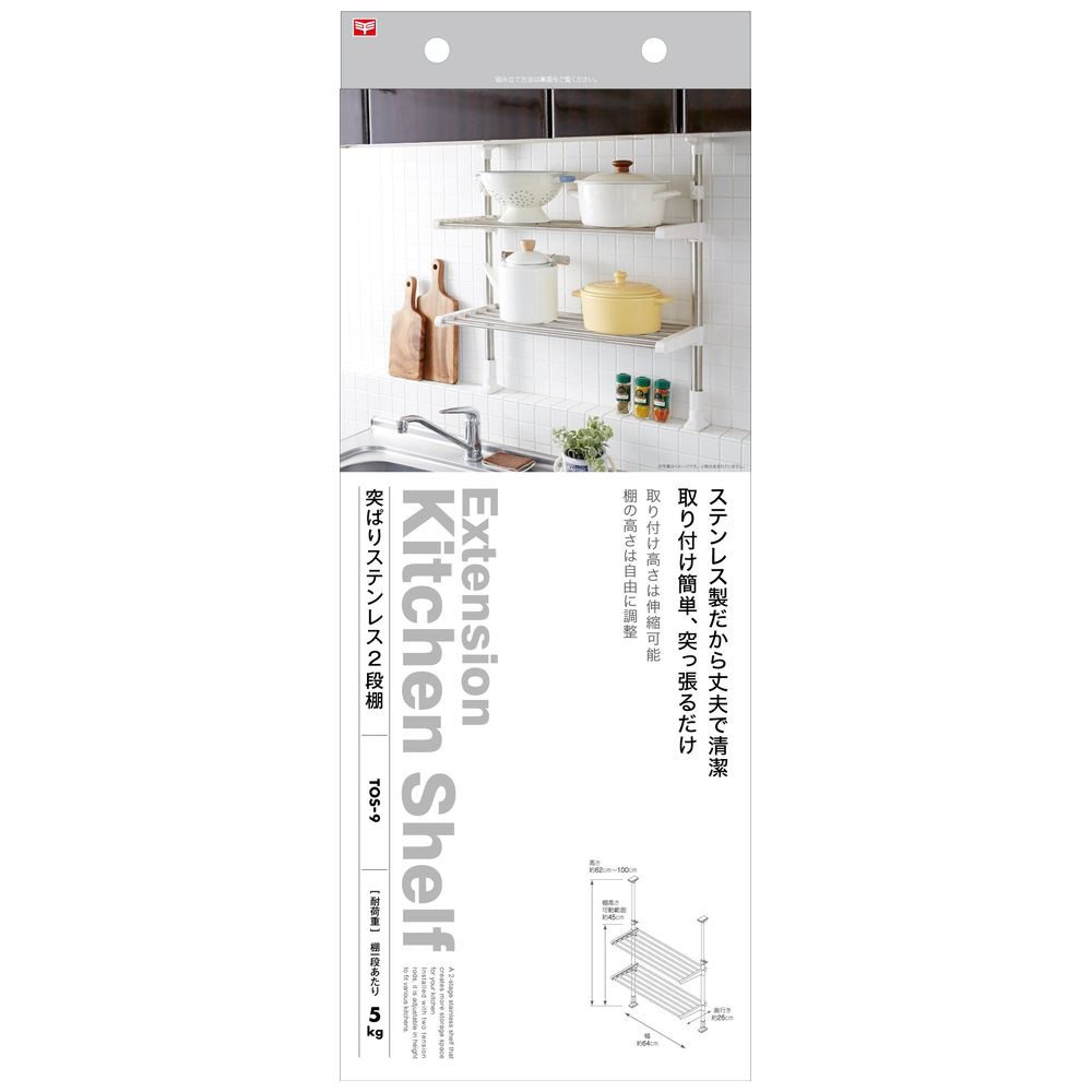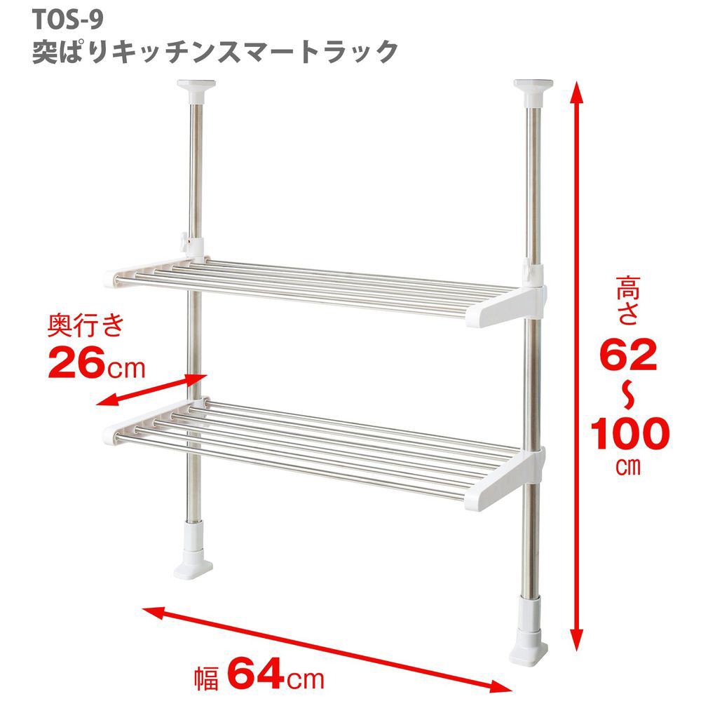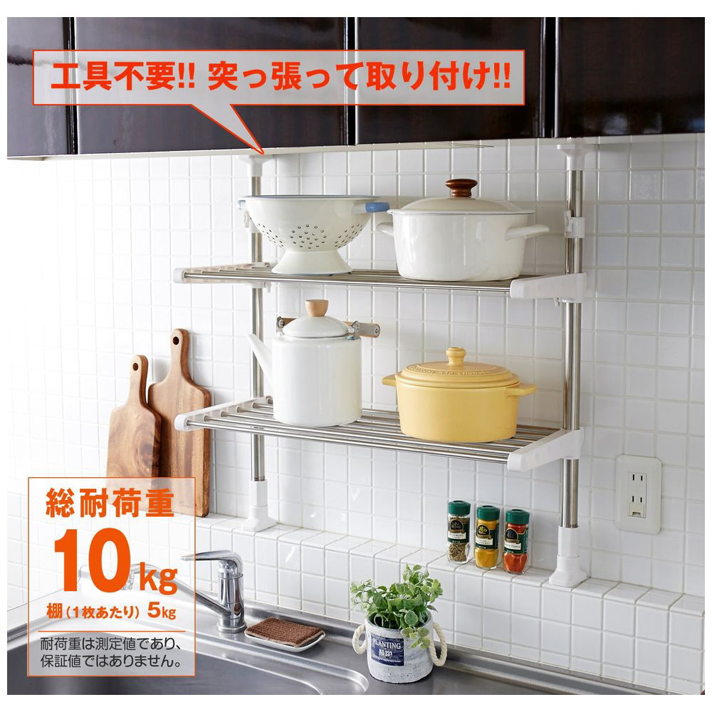つっぱり棚 突ぱりステンレス2段棚 伸縮 高さ62〜100cm ステンレス