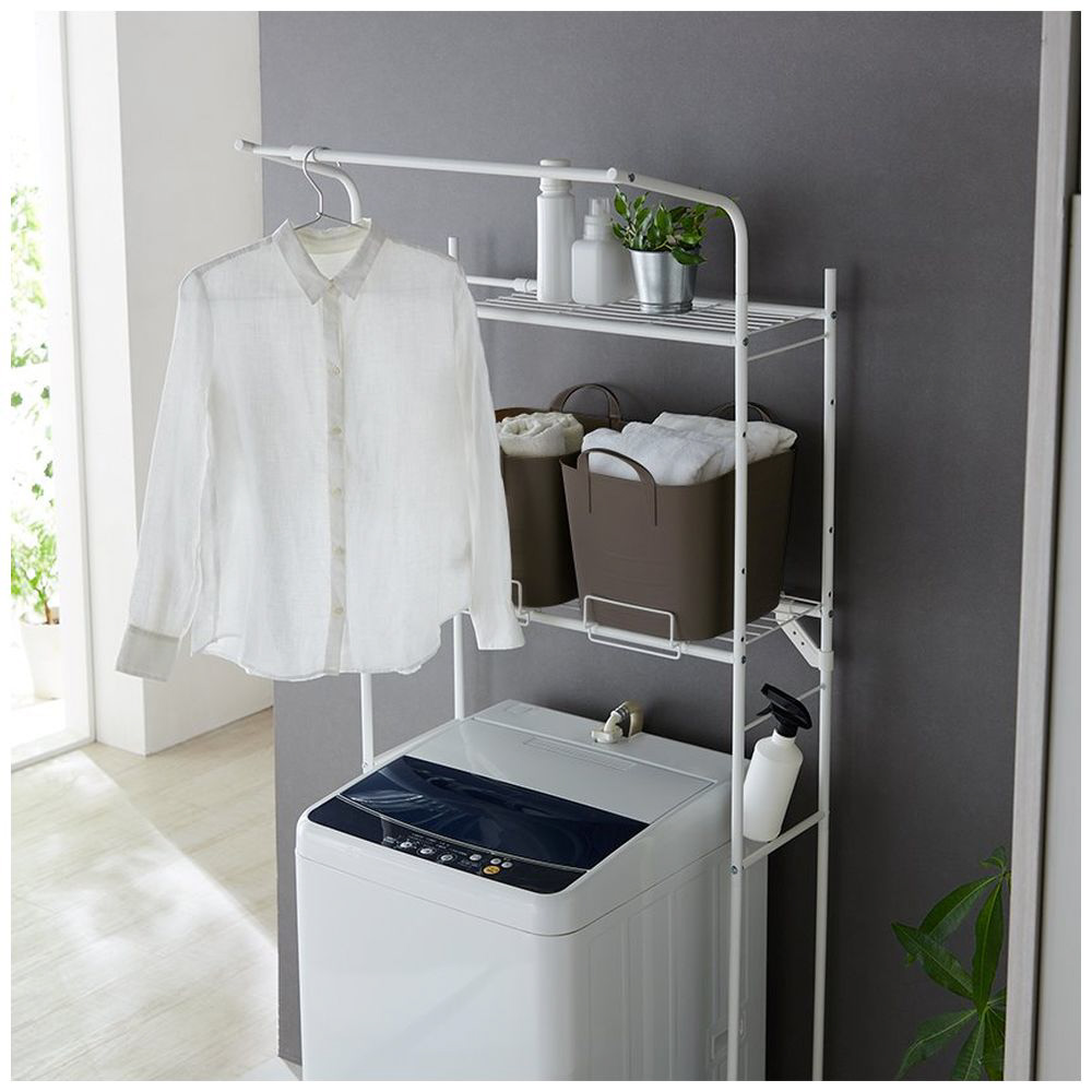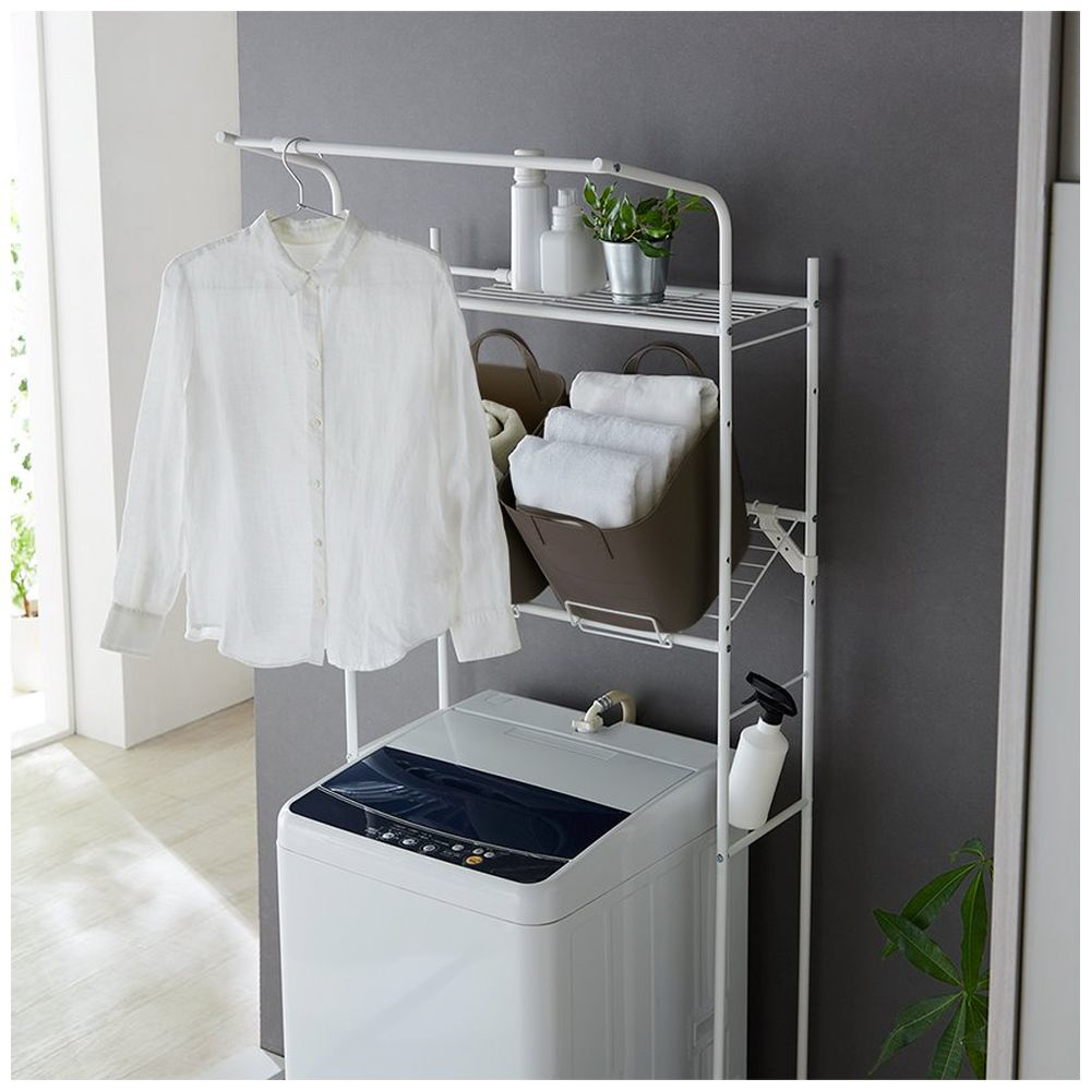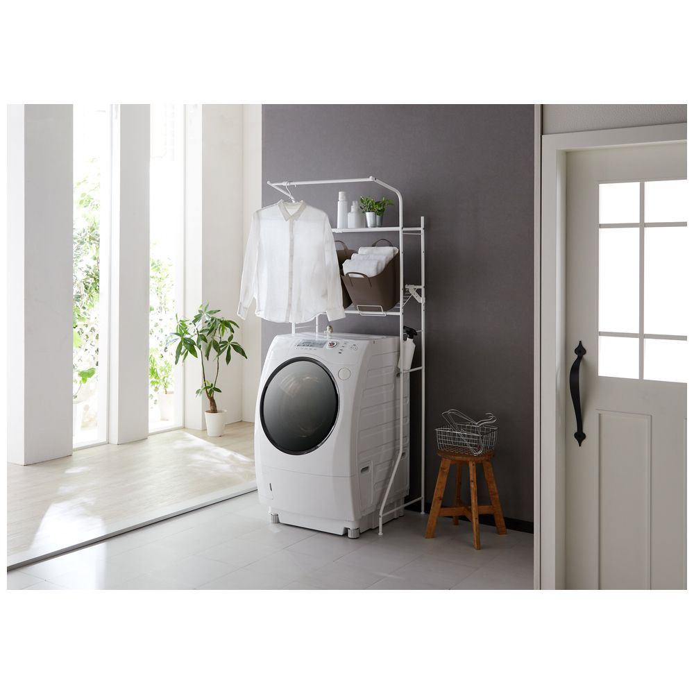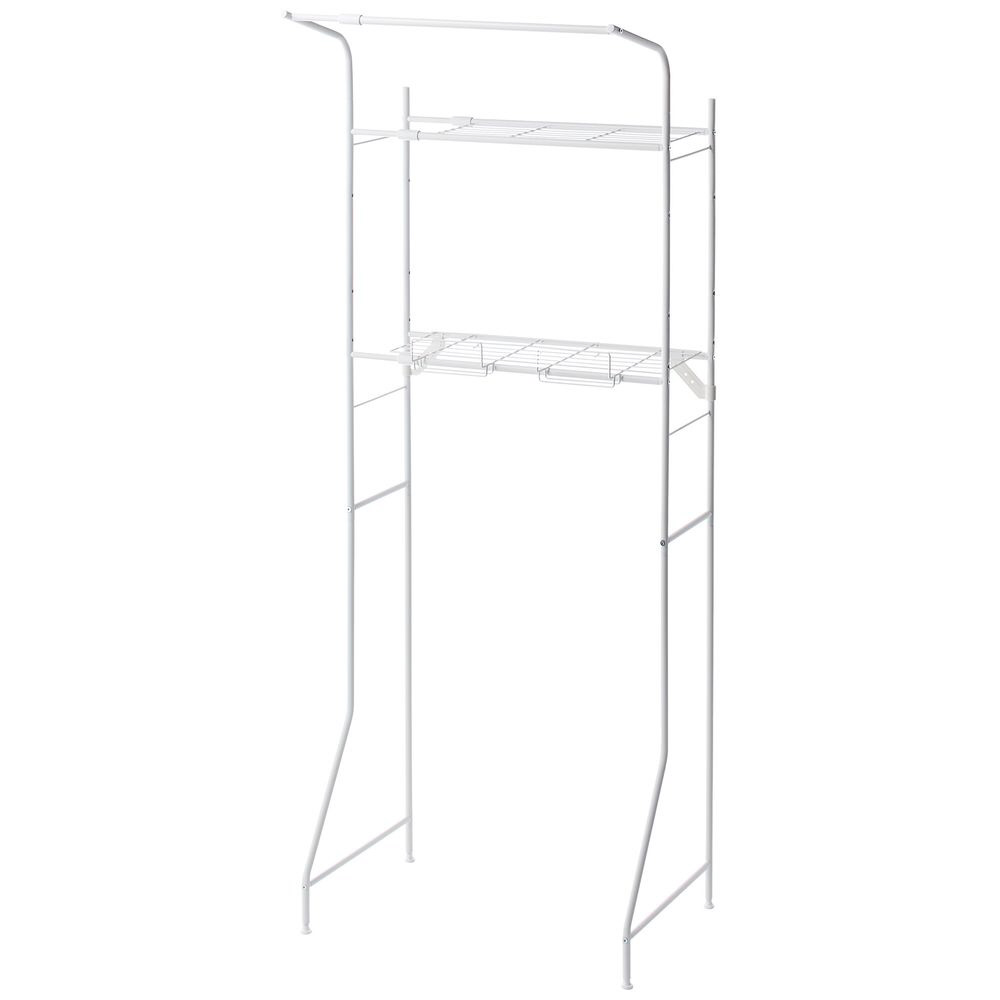 平ら・斜めに変更できるバスケット台付きの洗濯機ラックです。