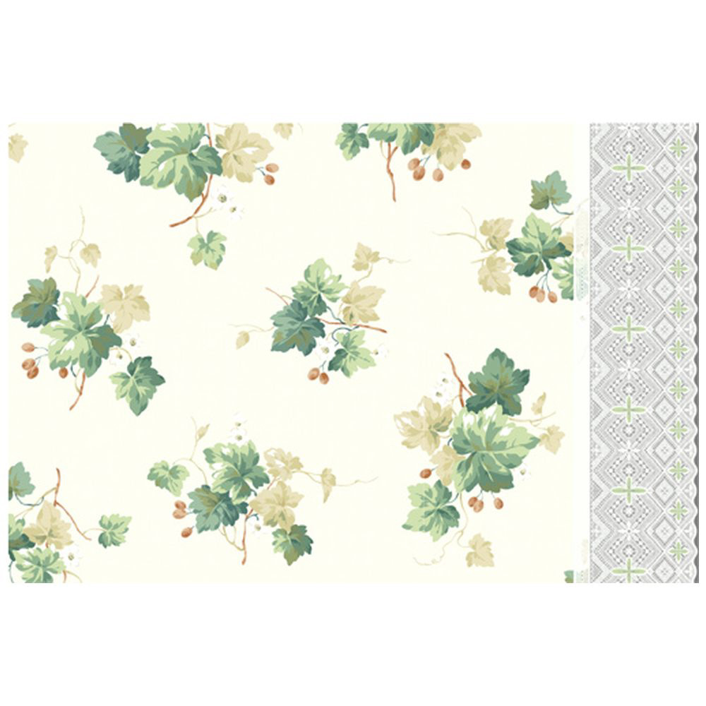 ■シンプルな草木柄とふちにレース模様をあしらったテーブルクロスです。