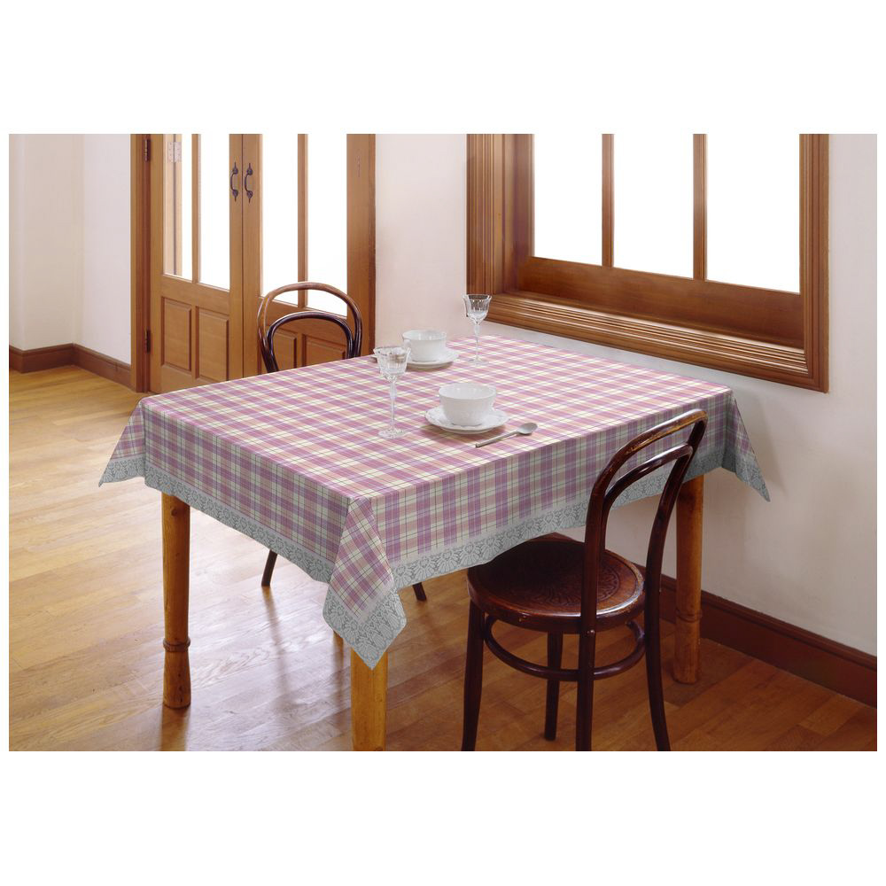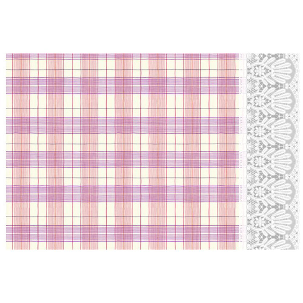 ■チェック柄とふちにレース模様をあしらったテーブルクロスです。
