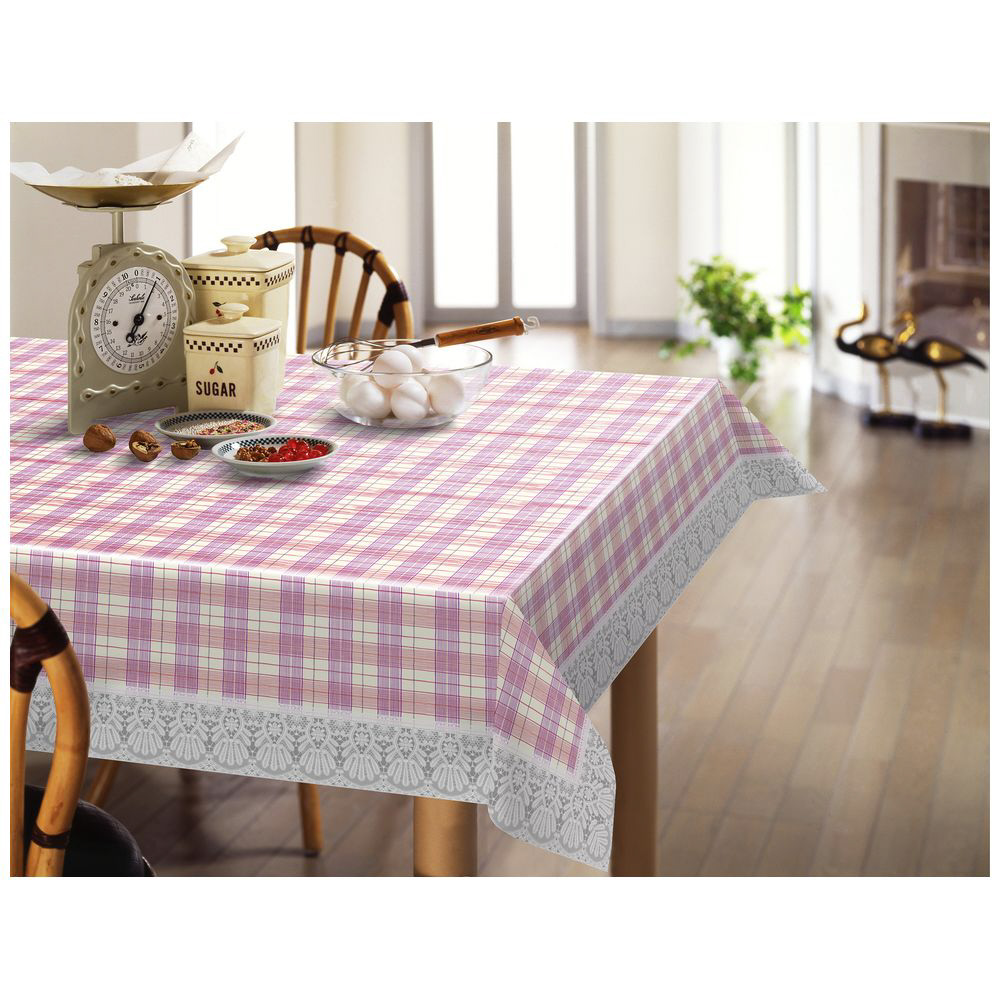 テーブルクロス 130×170cm エクシード サンマリノ 撥水 樹脂製 すべり止めシート付き ピンク