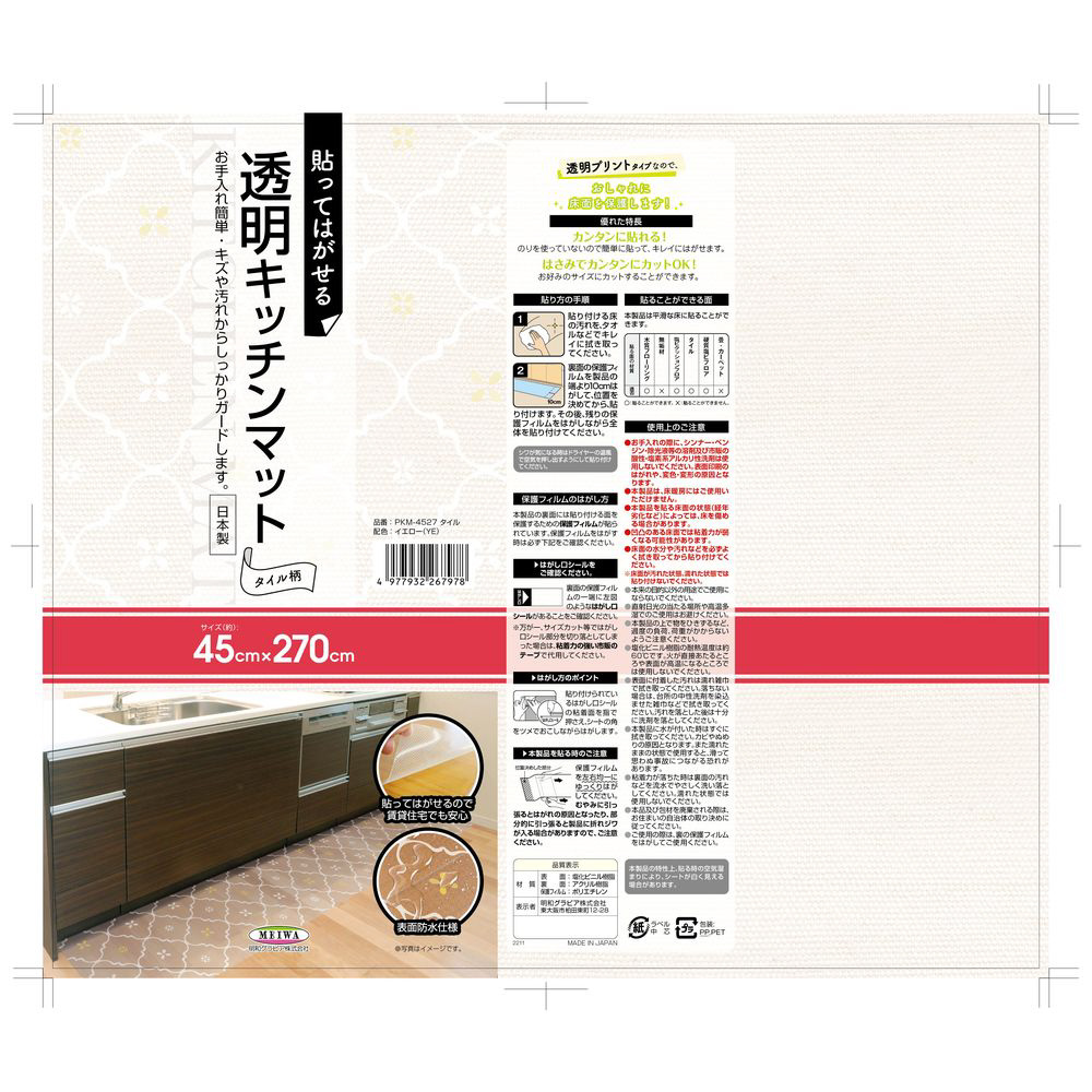 キッチンマット 拭ける 45×270cm 柄物 クリア タイル