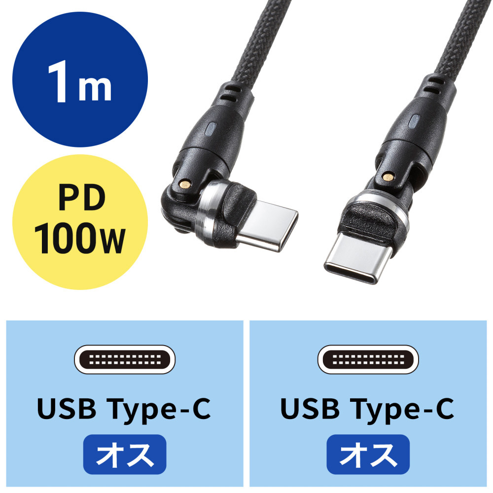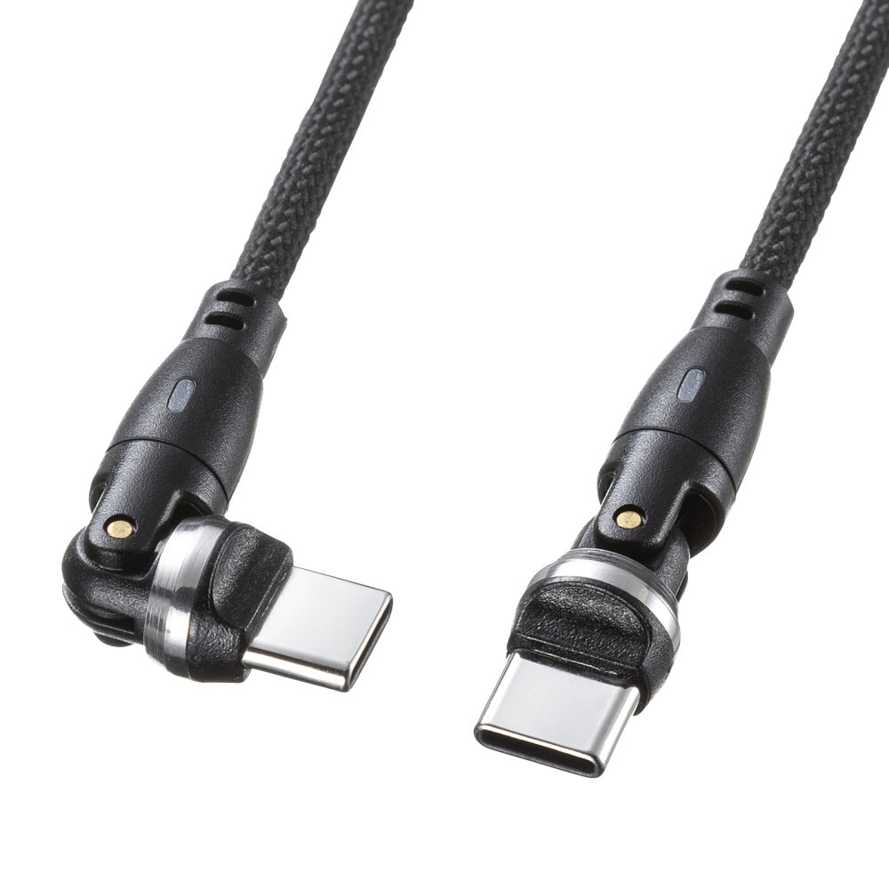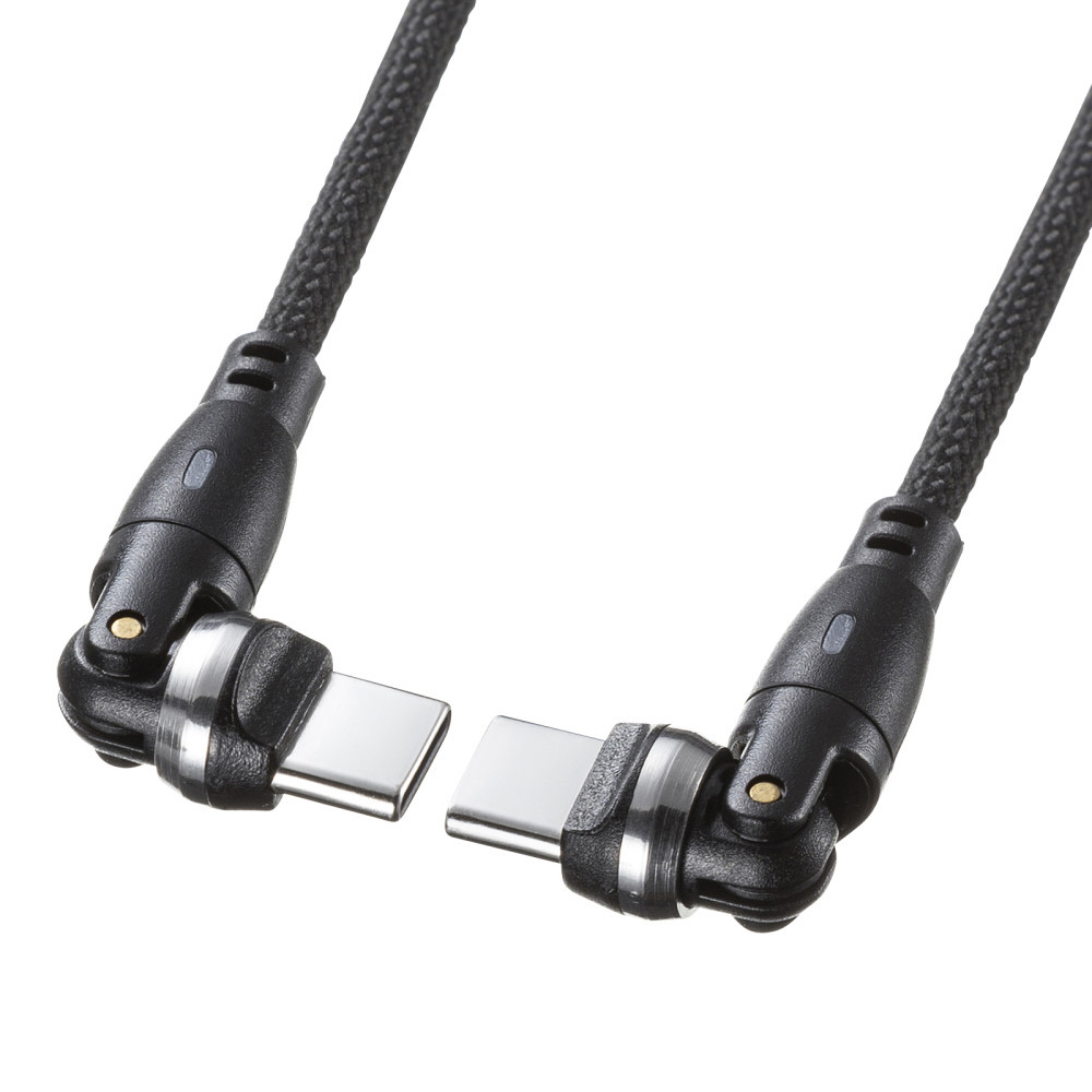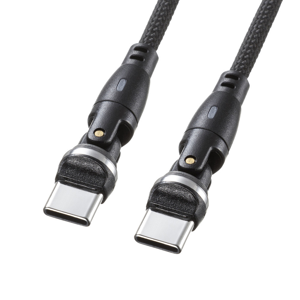 両端のコネクタが540度(左右180度+水平360度)自由自在に回転。操作性と耐久性を大幅に向上させたUSB Type-Cケーブル。PD100W対応。