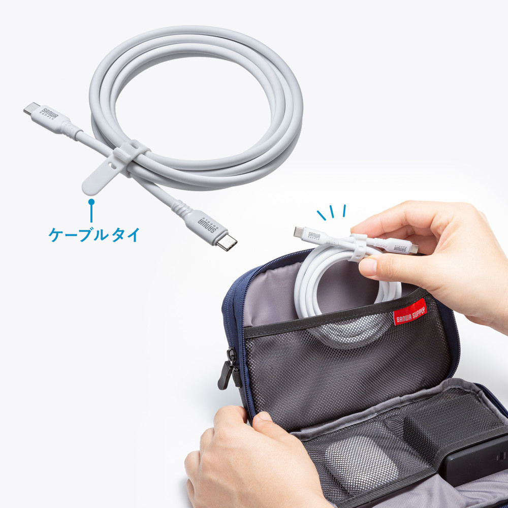 ■便利なシリコンタイ付きでケーブルを綺麗にまとめて持ち運びにも便利です。