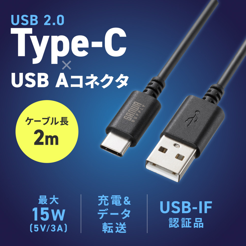 USB 2.0 Type-C-Aケーブル。USB-IF認証品。