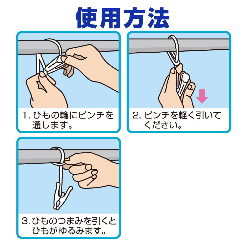 紐がついているので、物干竿などに固定することが出来ます。