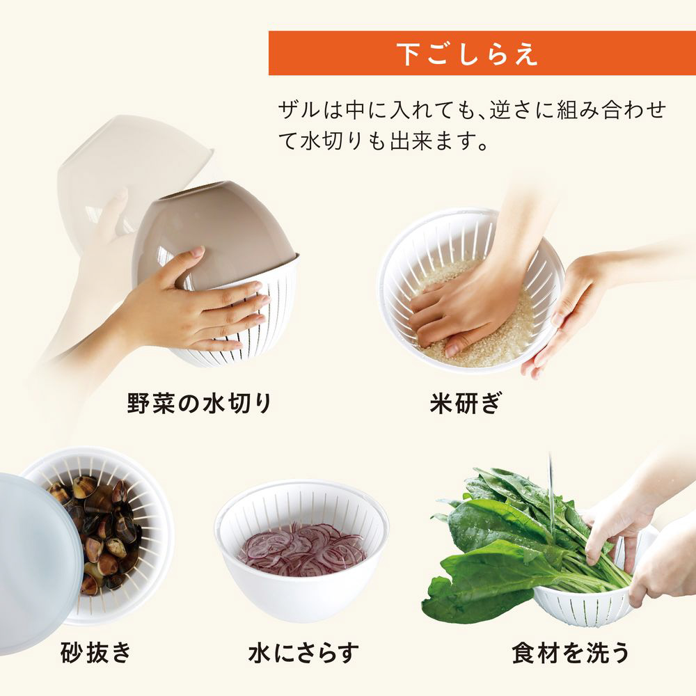 10役こなす便利なザルボウルセット!野菜の水切りから蒸し調理、電子レンジ加熱までこれ一つでOK。
