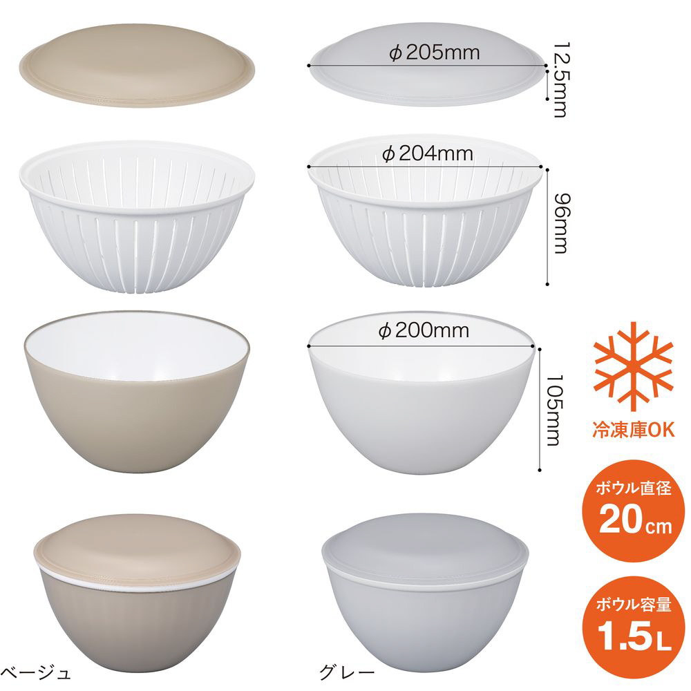 耐熱レンジザルボウルセット20cm BE ベージュ