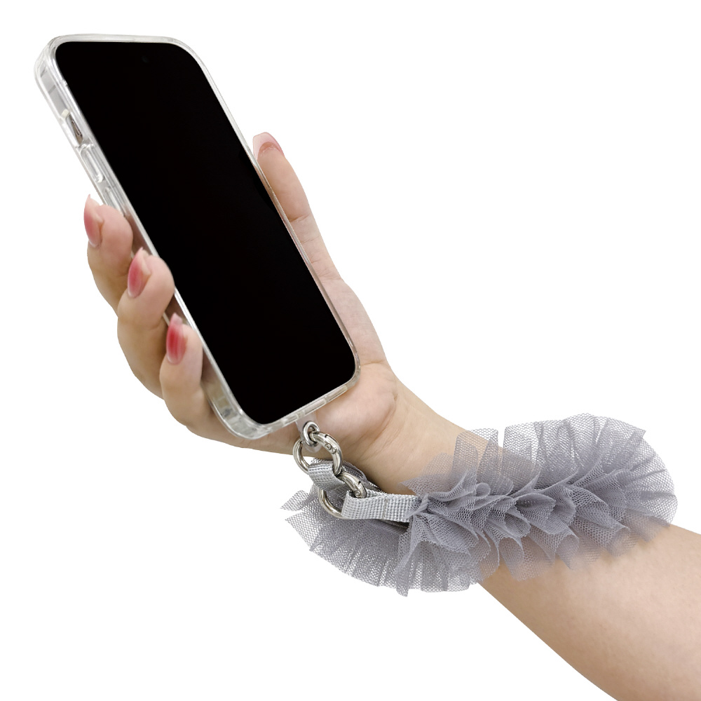 スマホケースにはさむだけ!カンタンかわいいチュールフリルのハンドストラップ