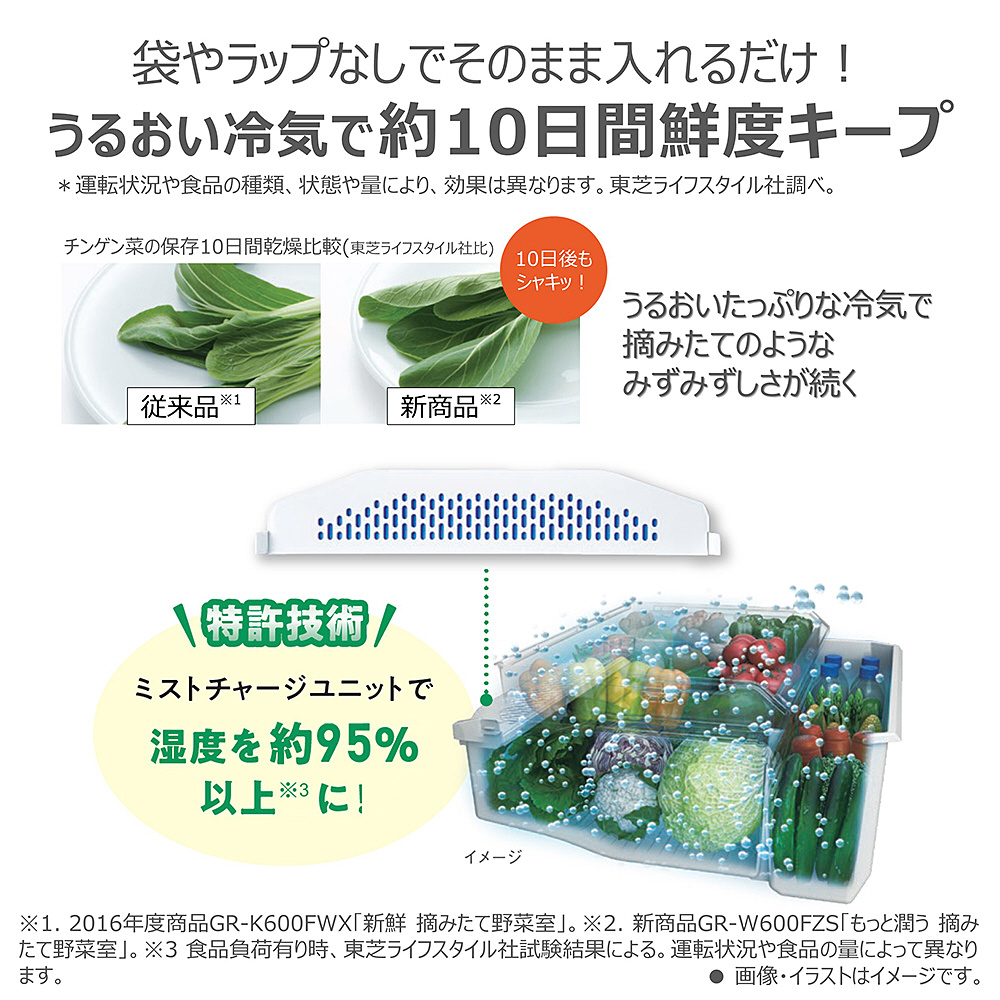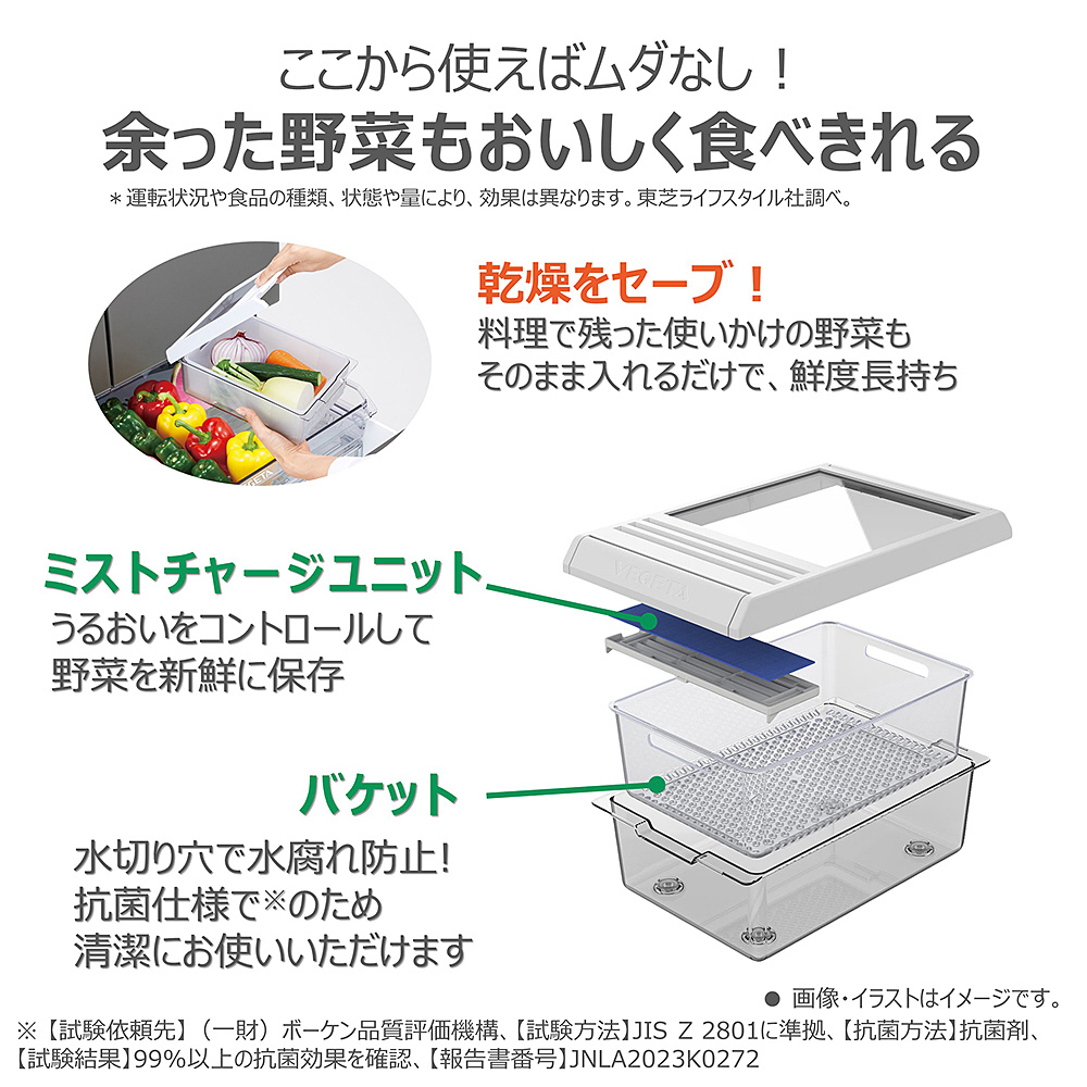 「野菜長期保存で新鮮な毎日」スマート大容量タイプのベジータ。