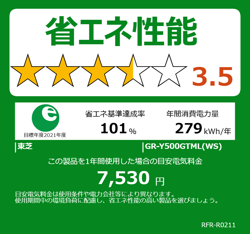 冷蔵庫 VEGETA(ベジータ)GTMシリーズ エクリュホワイト GR-Y500GTML-WS [幅60cm /501L /5ドア /左開きタイプ /2025年]