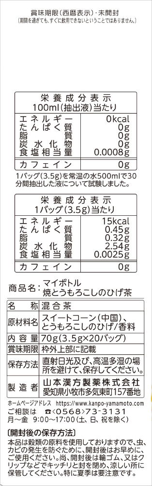 【軽減税商品】マイボトル焼とうもろこしのひげ茶 3.5g 20包