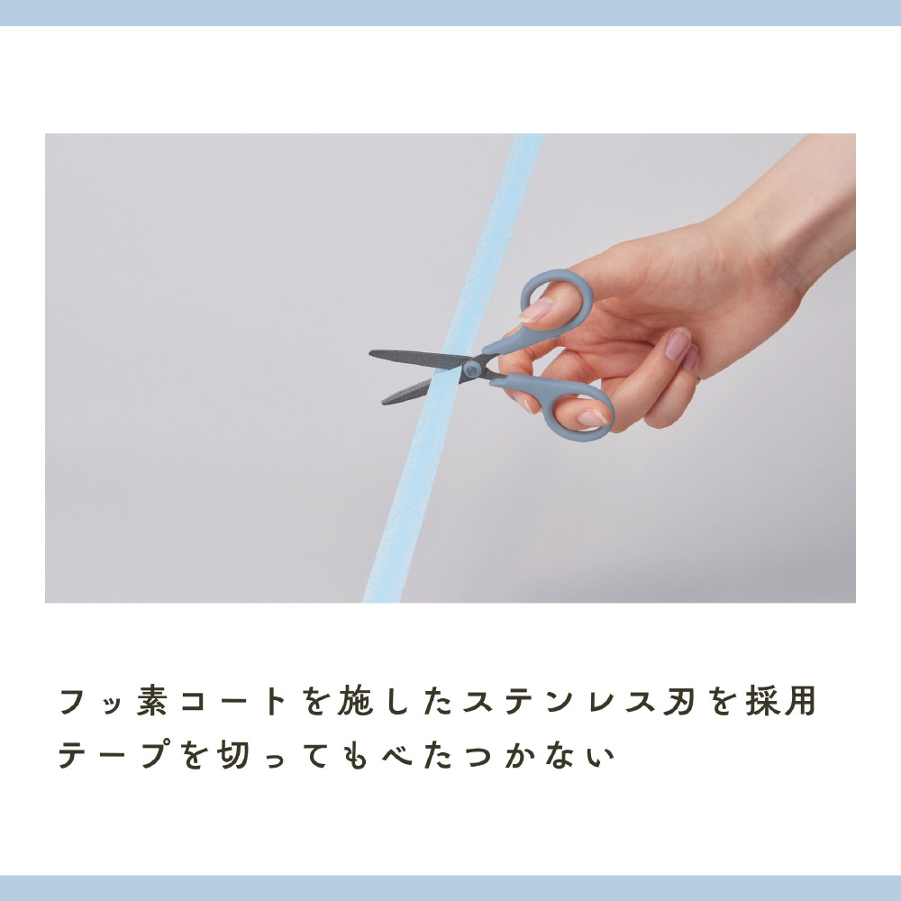 テープを切ってもべたつかないフッ素コート。ペンケースにぴったりなミニばさみ