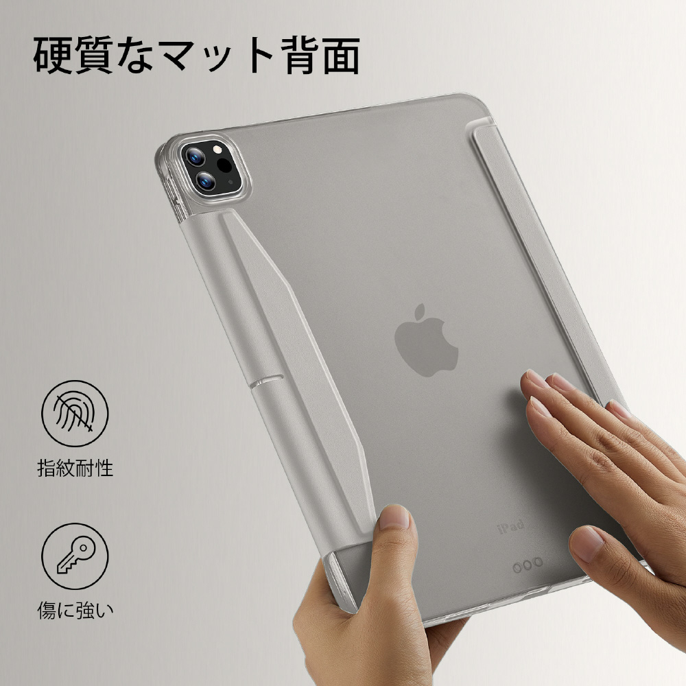 前面カバーと背面シェルにより、スリムで軽量な状態に保ちつつ、iPadを包括的に保護することができます。