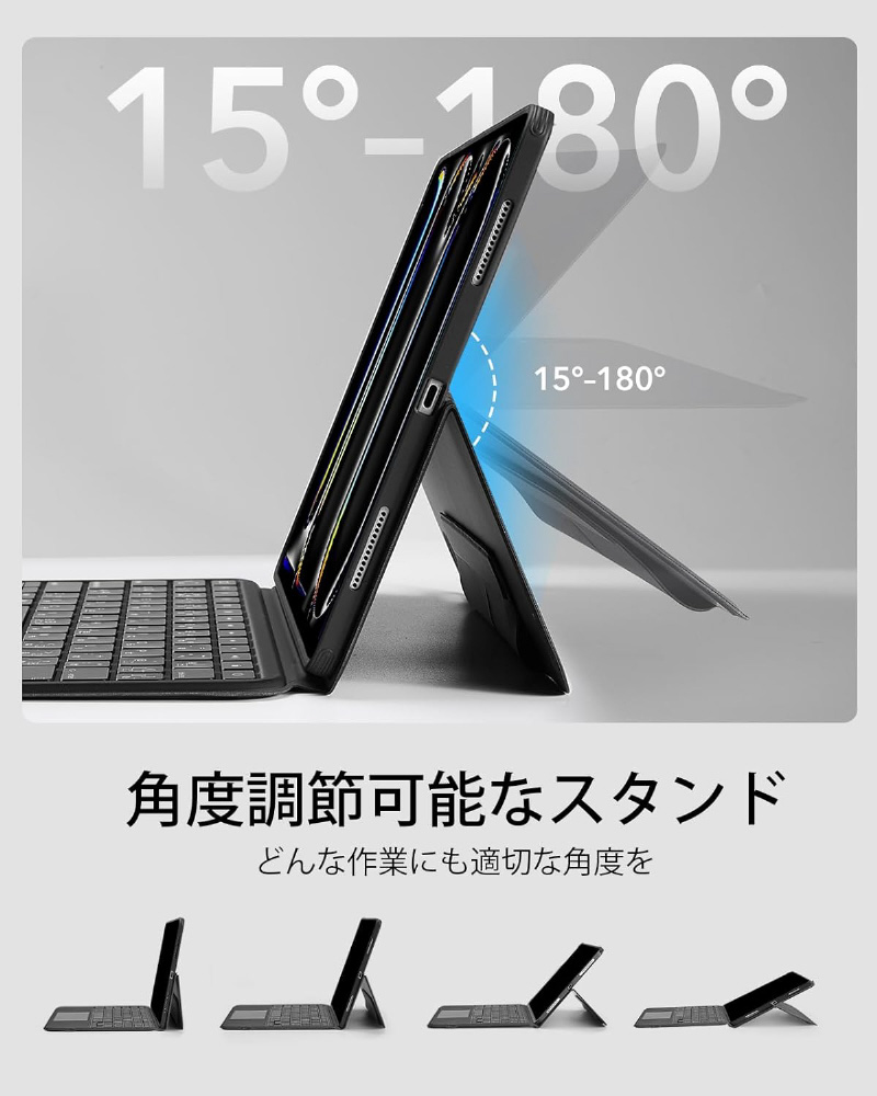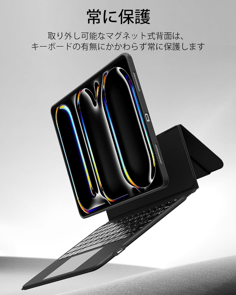 11インチiPad Pro(M5/M4)用 角度調節可能 横置き縦置き対応 着脱式キーボードケース ESR Ascend Keyboard Case iPad Pro 11 M4 ブラック