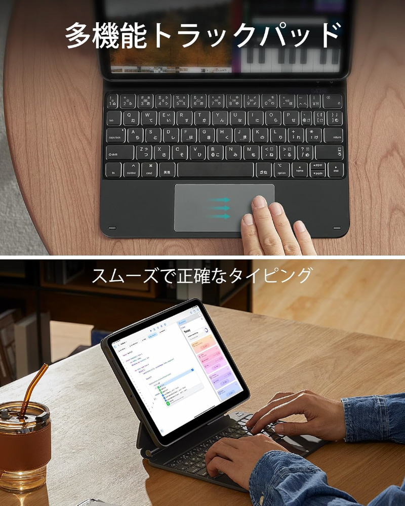 拡張超高感度マルチタッチトラックパッドを1ミリ単位使用している為、タップ、ピンチ、スワイプを完璧な精度で行え、iPadをまったく新しい方法で操作できます。