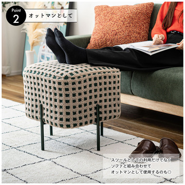 ●スツールとしての使用だけでなく、ソファと組み合わせてオットマンとしても。