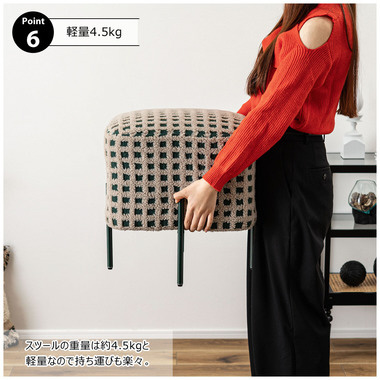 ●スツールの重量は約4.5kgと軽量なので持ち運びも楽々。