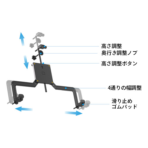■上部金具は押しボタンによる無段階調整で、モニター受部品の位置を自由に調整できます。