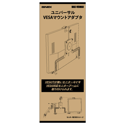 VESA穴が無いモニターなどをVESA対応モニターアームに取り付けられます。