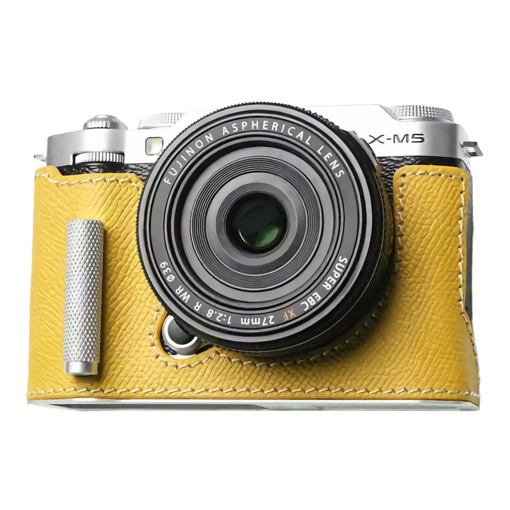 【受注生産】 富士フィルム X-M5用 本革ケース メタルグリップ付 ブライトイエロー