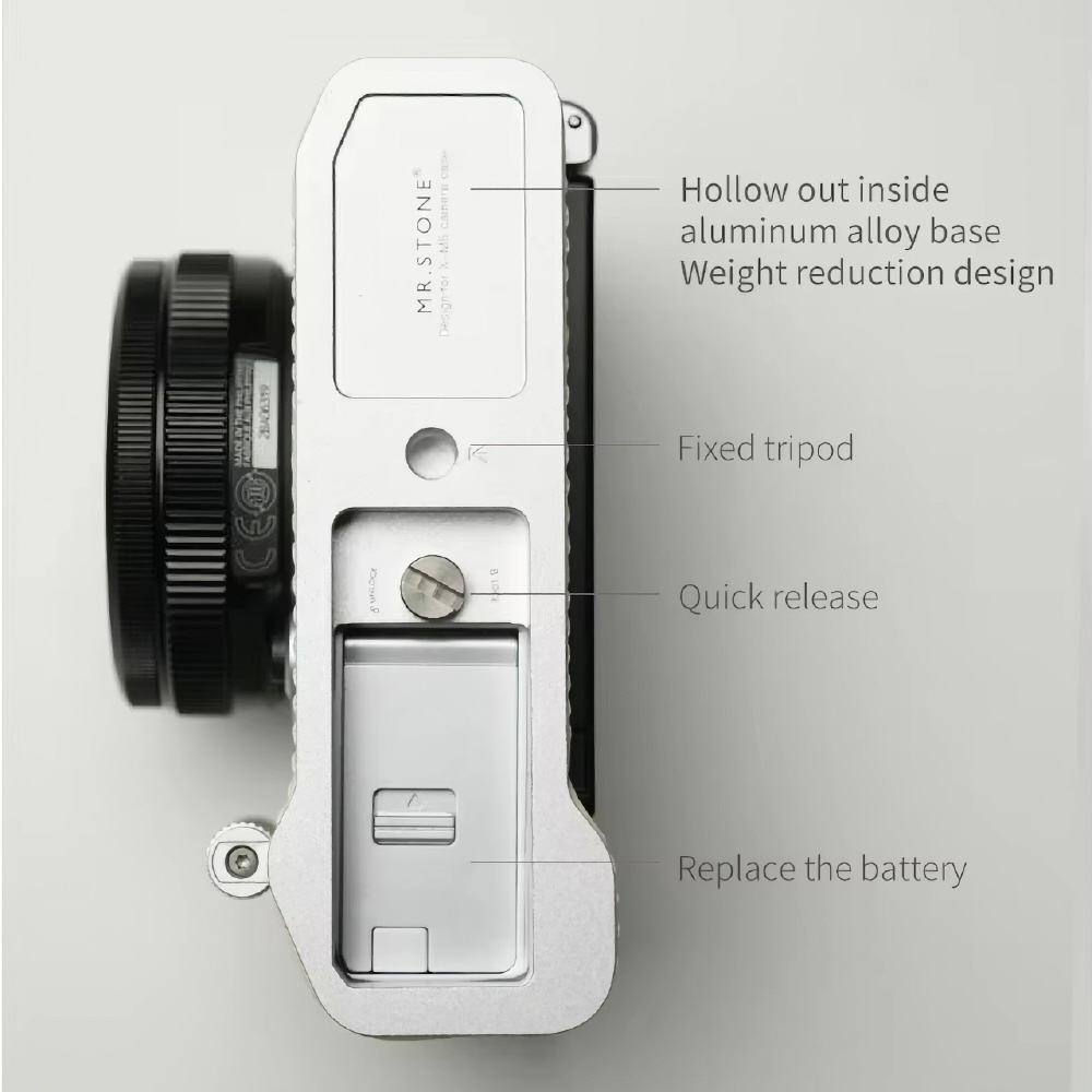 ケースを取り付けることでファッショナブルに個性を主張でき、同時にボディーを保護できます。特に、X-M5のプラスチック製で傷つきやすい底面をアルミ合金で保護できます。