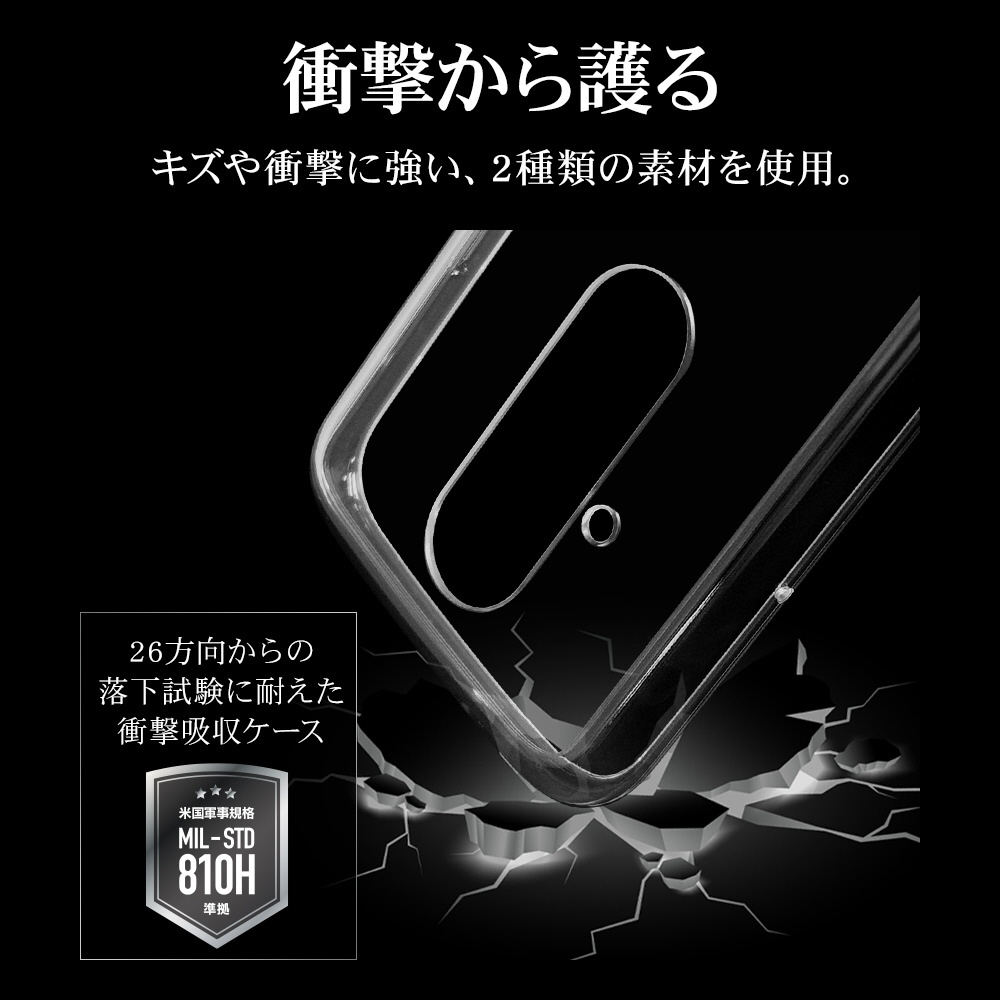 側面を柔軟なTPU、背面を傷に強いアクリル素材で保護するハイブリットケースです。