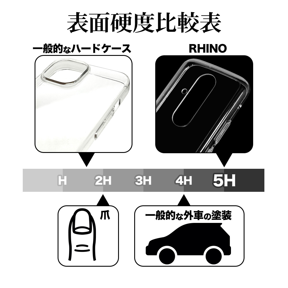 表面硬度5Hの傷に強いアクリル素材を背面に採用しています。
