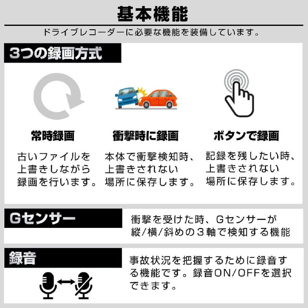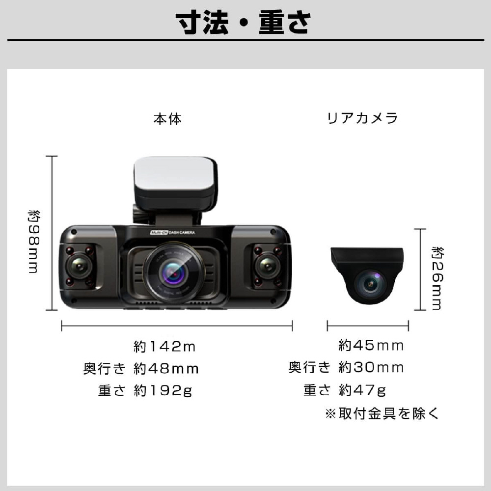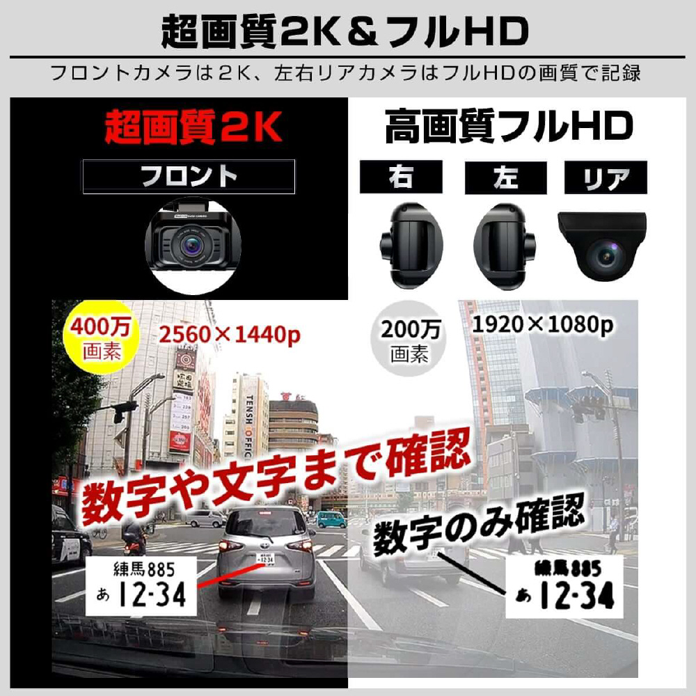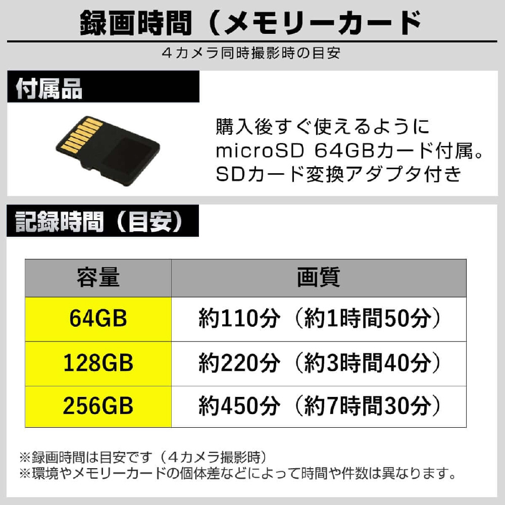 防水リアカメラ対応4カメラドライブレコーダー GS640GE-64GB [前後カメラ対応]
