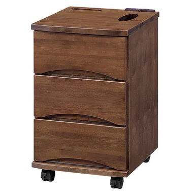 深みのあるウォールナットの色合いが落ち着いた雰囲気を醸し出し、たっぷり3段の引き出しが散らかりがちなリビングの小物をしっかり受け止め、生活感を隠してくれます。