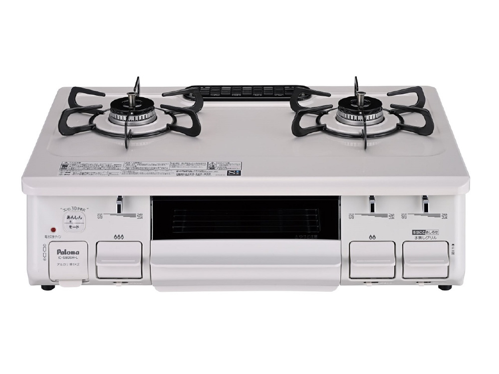 安全機能充実のガステーブルコンロ。 消し忘れ防止機能、お手入れしやすいフラットトップ、水なし片面焼きグリル搭載です。