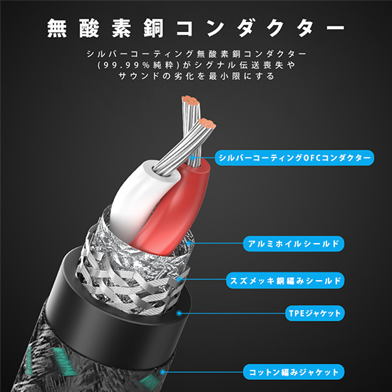 グリーンシェルと編みジャケットで従来のプラスチックジャケットに勝るプレミアムな外観を表現。澄み切った音質でHi-Fi音楽の世界にどっぷり浸かる。シルバーコーティング無酸素銅コンダクターがシグナル伝送喪失やサウンドの劣化を最小限にする。それぞれのコンダクターが保護されている2重シールドで、EMIやRFI干渉を防ぐ。