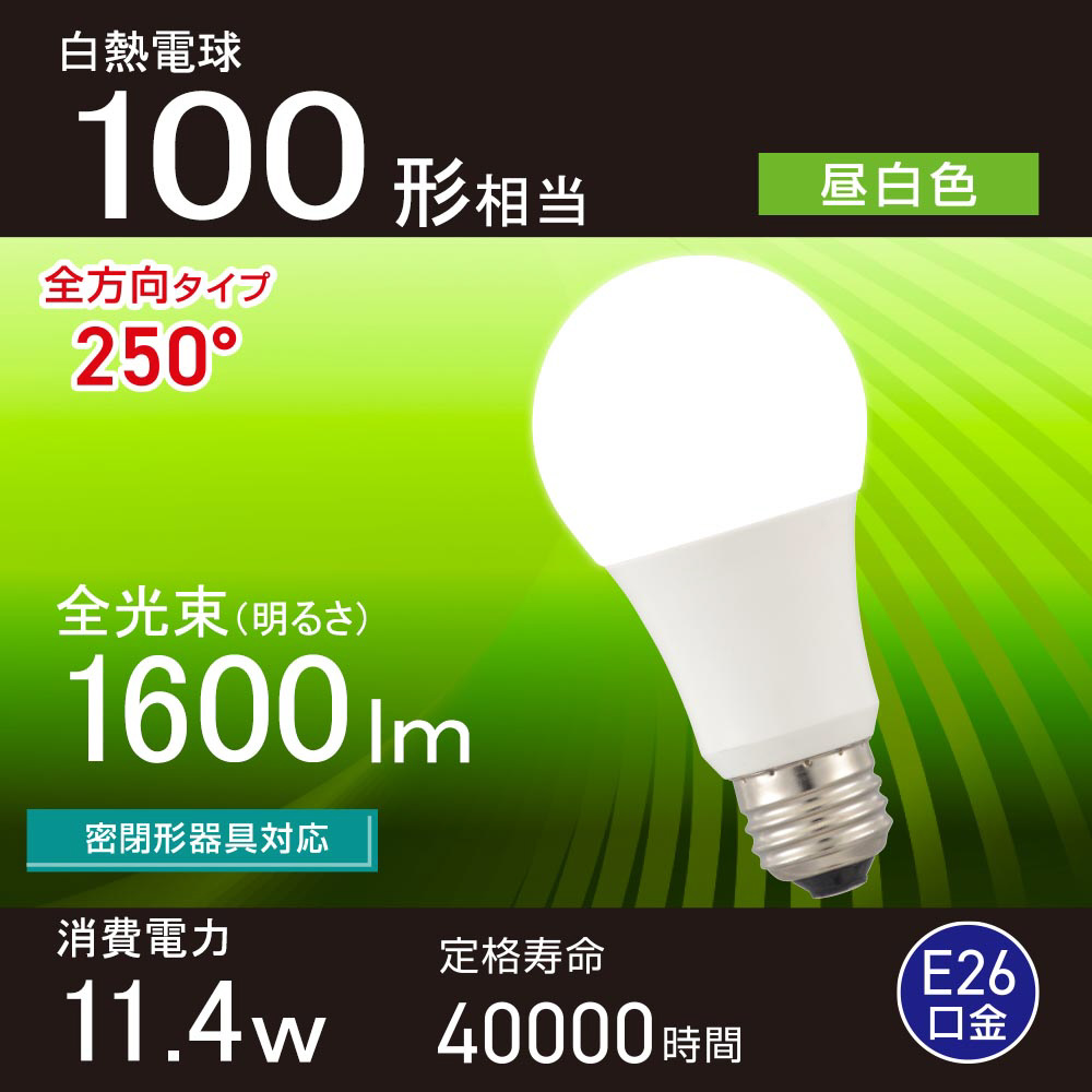 全光束1600ルーメン、白熱電球100形相当の明るさ