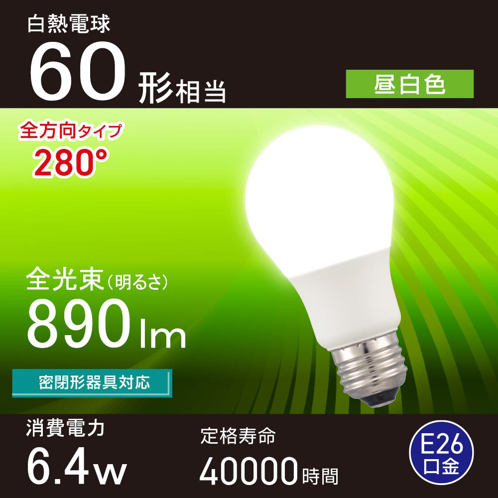 全光束890ルーメン、白熱電球60形相当の明るさ