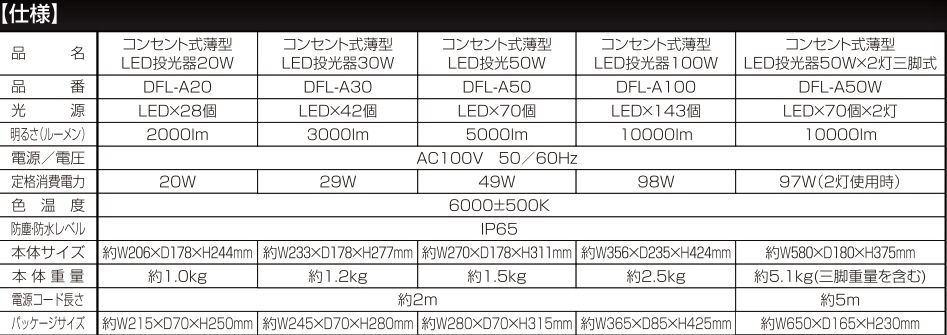 DAISHIN コンセント式薄型LED投光器50W×2灯三脚式 DFL-A50W