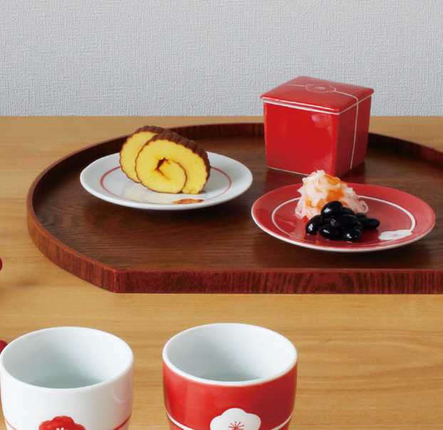 配膳時に器が滑りにくいノンスリップ加工が施された、安心安全な半月膳です。