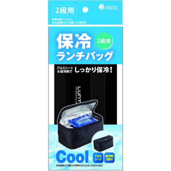 2段用保冷ランチバッグ(保冷剤付) ブラック A3165
