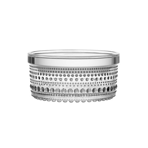 連なるガラスのしずくのようなデコレーションは、当初は製造過程で残った接合部を隠すためのアイデアでしたが、デザイナーのオイバ・トイッカはこれをとても気に入り、全体にあしらわれることになりました。