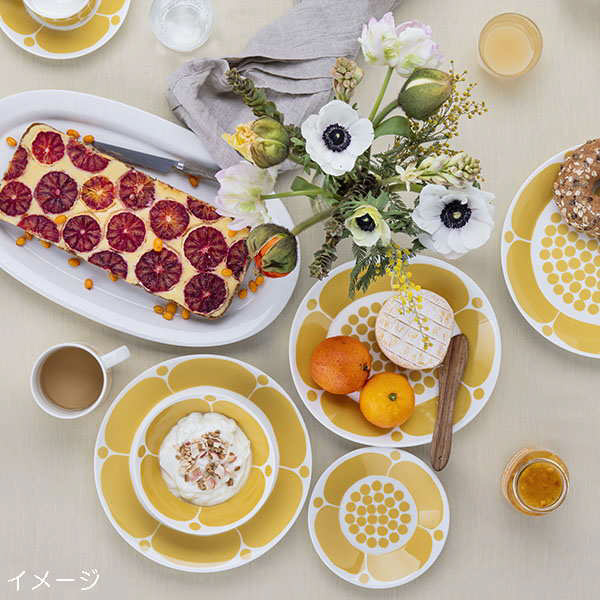 フィンランド語で「日曜日」を意味する「スンヌンタイ」。陽気でポジティブ、レトロで少し素朴で、ユーモアとエネルギーに満ち溢れた「スンヌンタイ」の色のしぶきは、シンプルなセッティングにも生き生きとした生命感をもたらします。