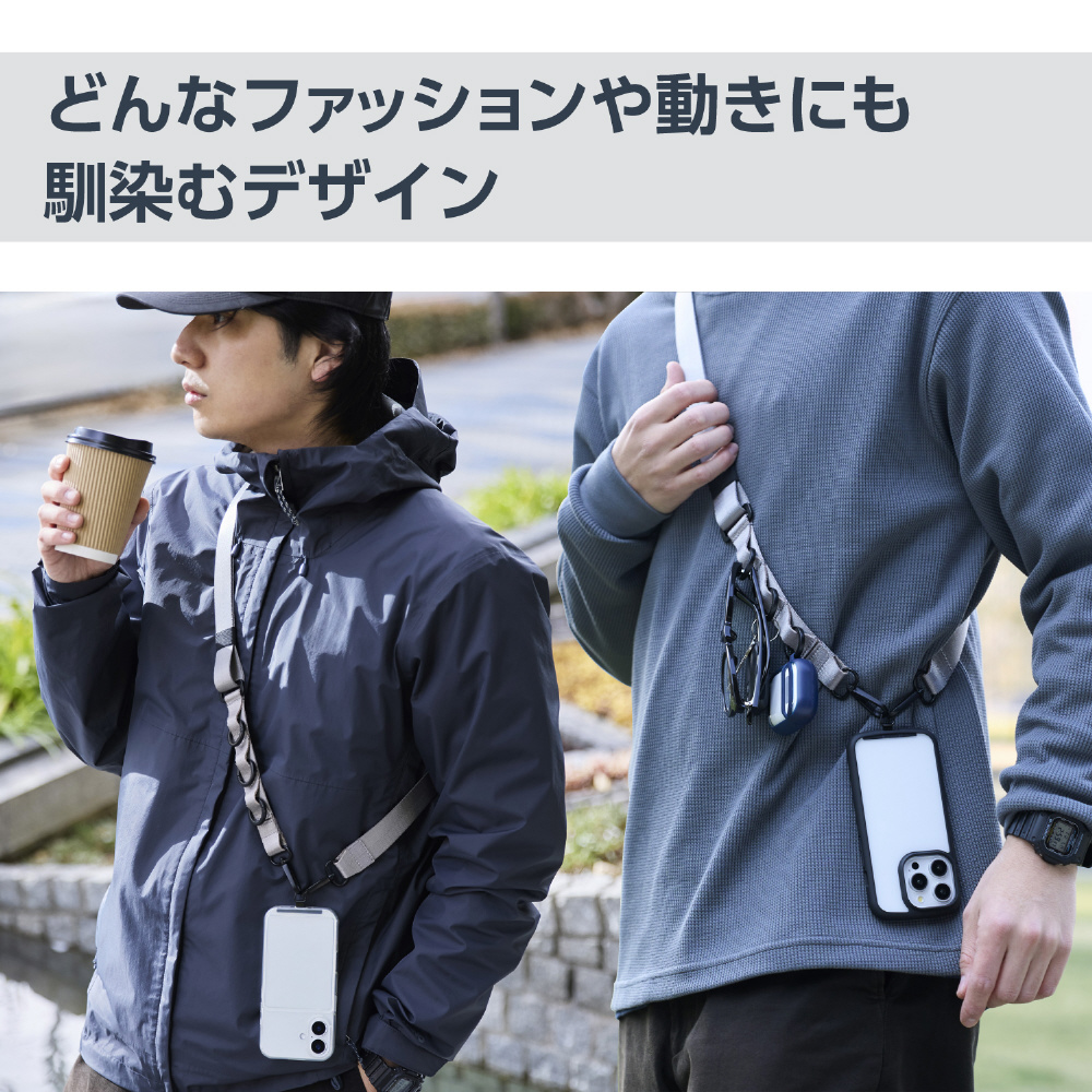 どんなファッションや動きにも馴染み、フィットする幅広フラットタイプのスマホショルダーストラップです。