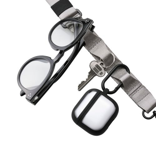 ベルト幅が25mmと太めで、ワイヤレスイヤホンや鍵といったアクセサリを取り付けても肩が痛くなりにくく長時間のお出かけでも使いやすいです。