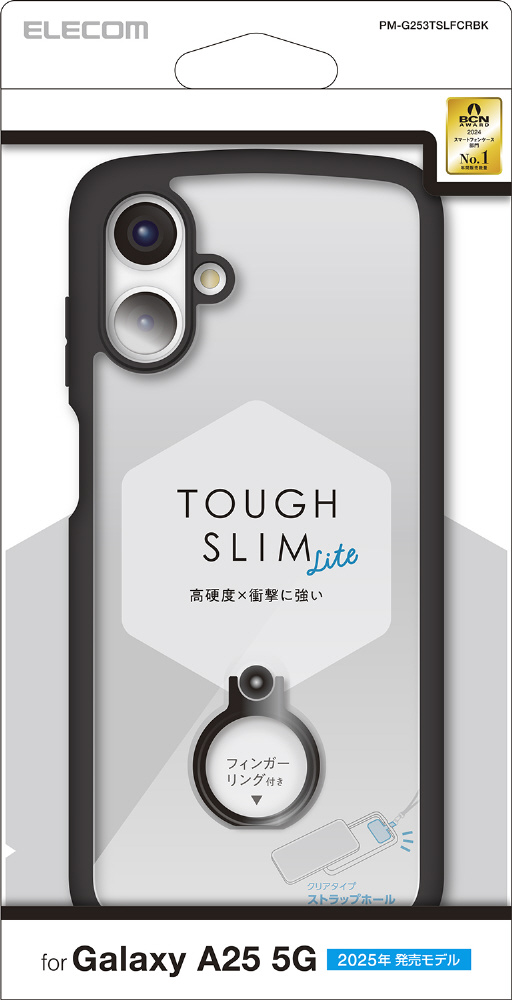 Galaxy A25 5G(SC-53F)/ハイブリッドケース/TOUGH SLIM LITE/フレームカラー/背面クリア/リング付き/ストラップシート付属 ブラック PM-G253TSLFCRBK