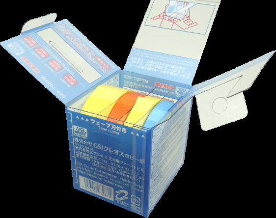 カットする時はケースの左右を手で持ち、マスキングテープの上面(のりが付いていない方)をウェーブ刃にあて、下の方にひねりながら切ります。