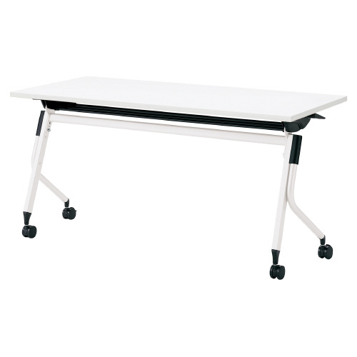 シンプルでスタイリッシュなフォールディングテーブル。「リネロ3」 幕板なし/棚板付き/ホワイト脚。
