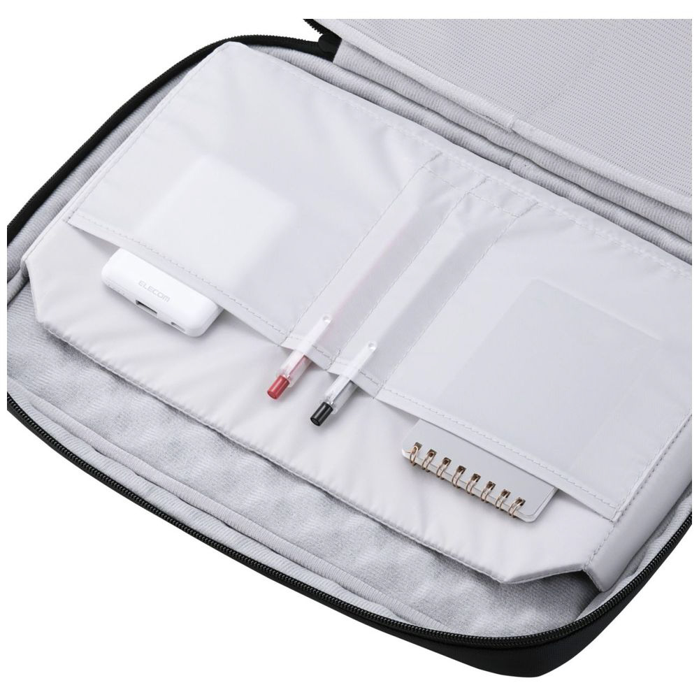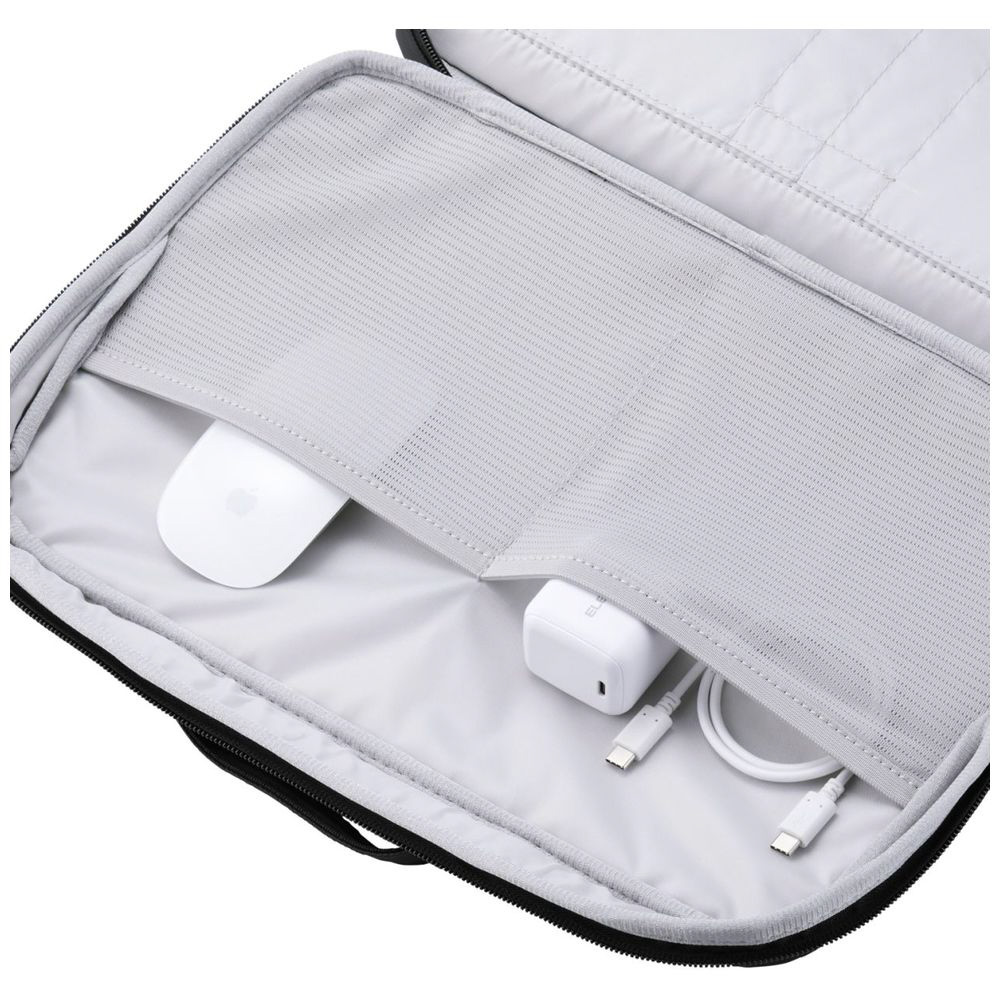 本体内装には、マウスやケーブルなどの周辺機器を整理して収納できるストレッチメッシュ素材のオープンポケットを2つ備えています。