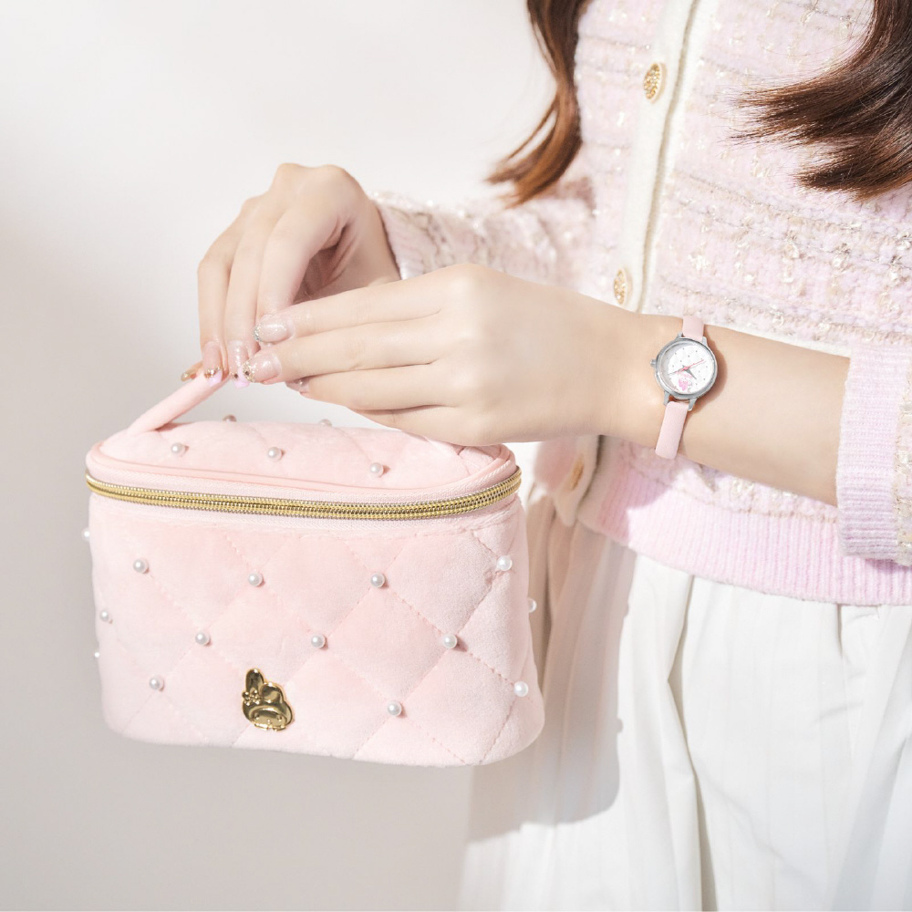■キルティング加工を施したキュートな文字盤がポイント。ケースバックにはキャラクターの刻印入り。